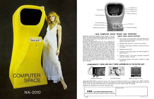 在此基础上,公司同样为《Computer Space》设计了一张宣传单页,这张广告也就顺理成章地揽下了游戏史的一个纪录——第一款商业化电子游戏的广告。
