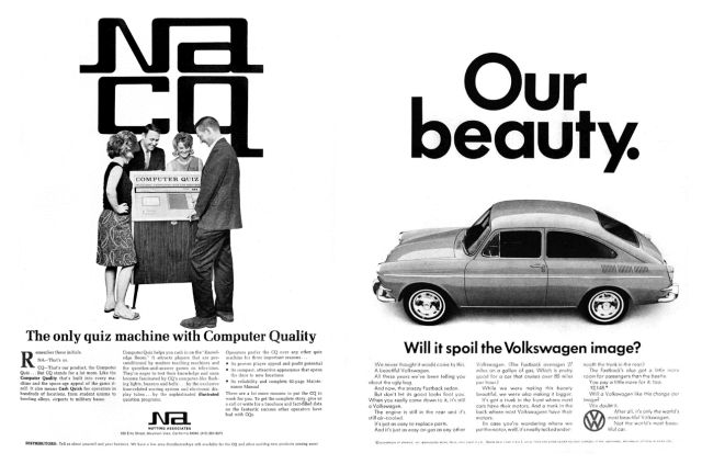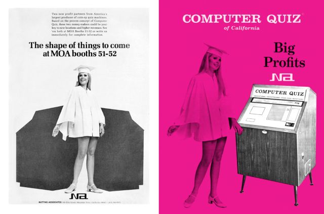 左:1968年7月6日刊登的街机游戏《电脑测验》的广告。
