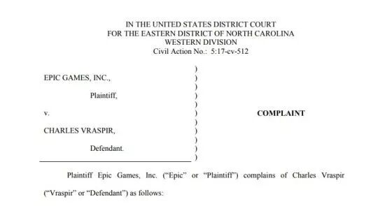 Epic在北卡罗来纳州法院发起的诉讼文件