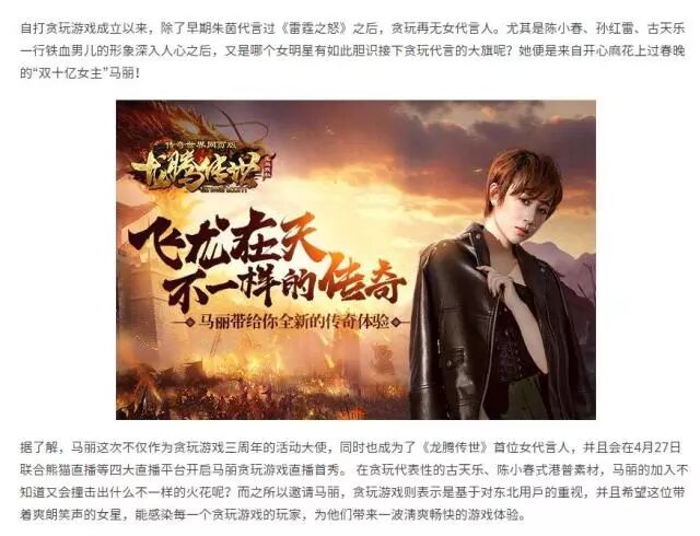 这次的广告声称“希望这位带着爽朗笑声的女星,能感染每一个贪玩游戏的玩家,为他们带来一波清爽畅快的游戏体验。”事实是不是真将如此呢?我们只希望马丽之后不会像张家辉一样感到后悔吧。