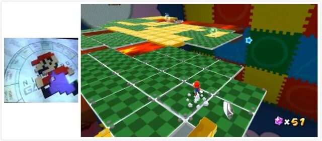一个“星球“会让马力欧看起来很大,但如果把星体的样子做成一个苹果,马力欧看上去就很迷你