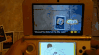 任天堂于11年发售的掌机3DS也有AR功能,内置《AR游戏》,随掌机附送6张小卡片,用3DS摄像头对准卡片就能调出各种小游戏,包括射击打靶、钓鱼、拍照、涂鸦等,效果已足够生动。