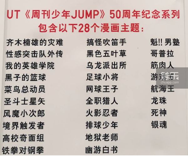 优衣库与《周刊少年Jump》合作T恤主题,共28个,其中有些翻译与粉丝们的童年记忆不太一样