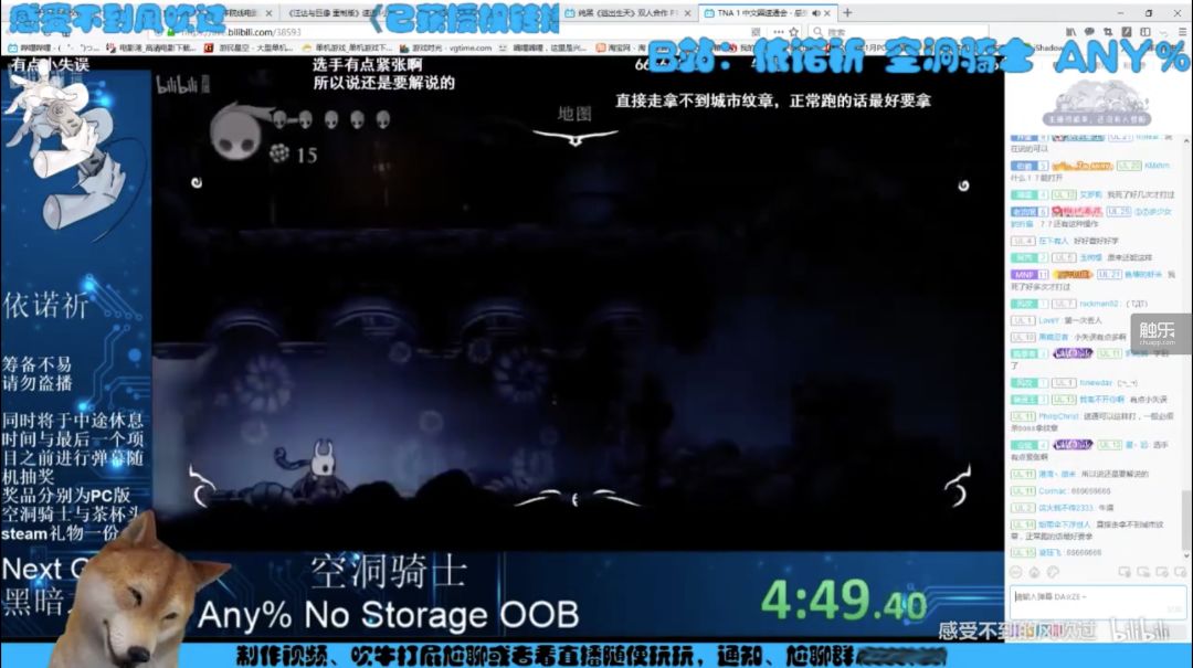 六师傅的台湾观众们显然也发现了这一点。由于Twitch直播间出问题导致计时器无法显示,他们也在艰难地刷着B站,并坚持在大规模的卡顿和黑屏之中观看了其他游戏的流程。一个最直观的结果,就是在六师傅自承“老马”,失误翻车、卡Bug失败后,Twitch聊天室的粉丝们纷纷刷起了新鲜出炉的“一般玩家”和“勉强算一个高手”……