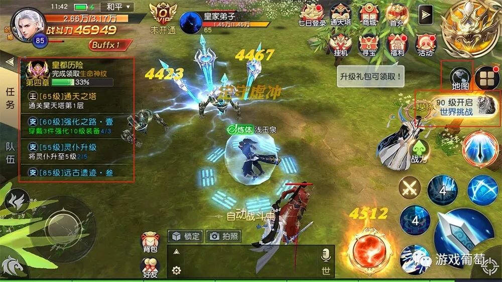 在每天完成高收益的游戏内容,《太古神王》为玩家提供了“离线挂机”功能。即玩家离线之后依然会进行打怪升级操作,效率相当之高,变相的缩短了轻度玩家与重度玩家之间练度的差距。