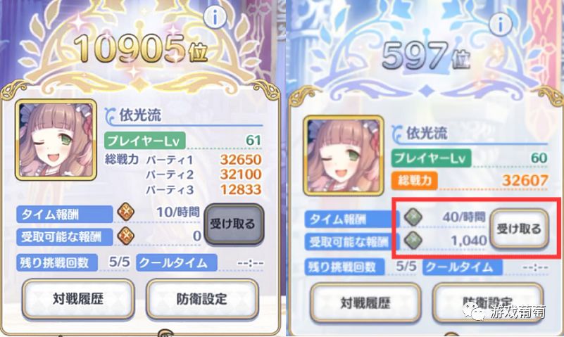 当玩家拿到高位的排行,收益会按照每小时获得量的多少往上涨,比如竞技场1000名以内的收益几乎是10000名的三到四倍。