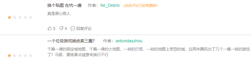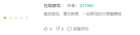 玩法相似是其最大的症结,况且一个玩法腾讯在半年内连续出了2款游戏,不免给人留下一种游戏换皮的感受。这种感受会直接体现在玩家的对游戏的认可度上,App Store里随手一截评论,基本都是这样的......