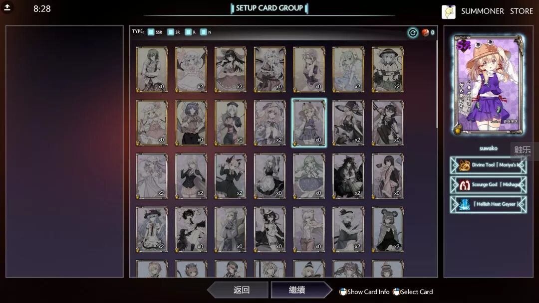 牌组构筑画面,第一次玩都是预组,要通关简单模式才能自组