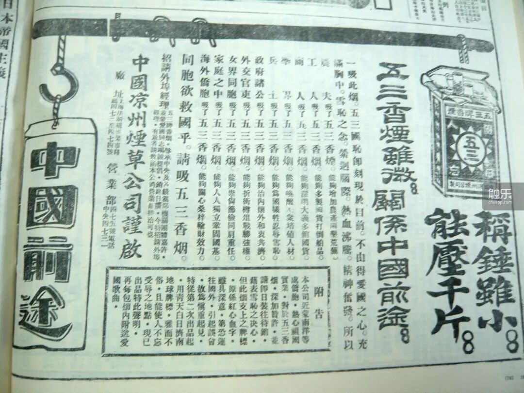 2008年5月,我在北京大学图书馆翻到《民国日报》(上海版)合订本第76分册,那时代报纸广告最多的就是烟和药,其中有一则“五三牌香烟”广告,我一看就觉得这不贴出来就太对不起历史了。此后几乎每年,我都会在网上重贴一次这张图,如今在正式的媒体上和大家再刷一遍,不亦乐乎。