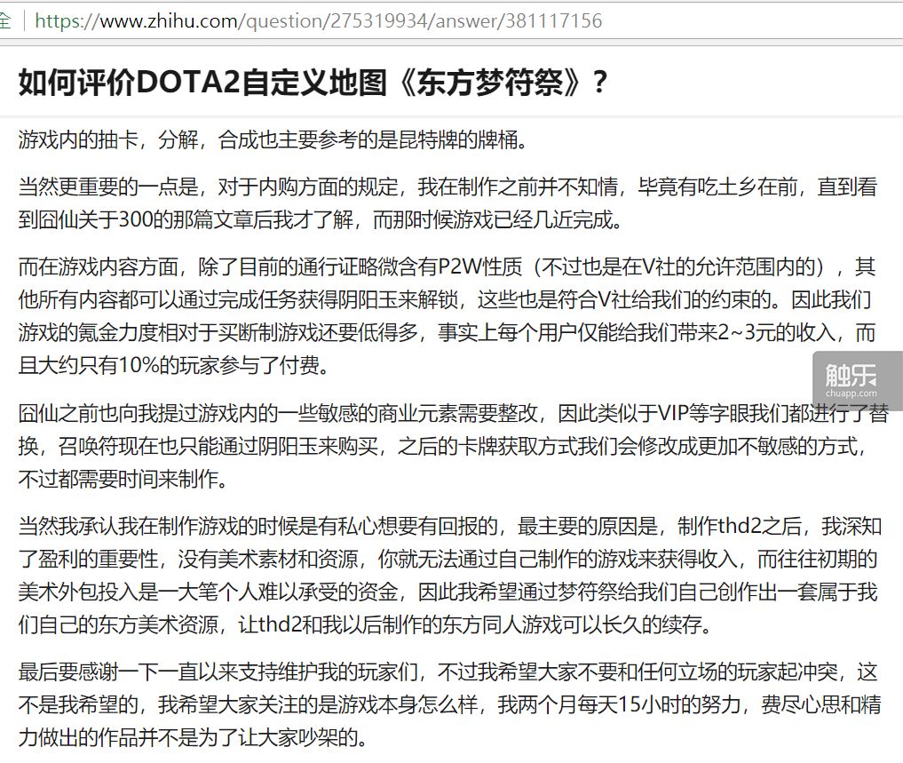 ZUN曾在《弹幕天邪鬼》的附带文档中表示过对课金抽卡类型游戏的反感,又认为游戏所设计的挑战,应该让玩家本身慢慢变强,而不只是角色的数值变强。由此观之,他自然是反对pay to win等“骗氪”模式的,但我们应该把一切的内购都等同于骗氪,一棒子打死吗?