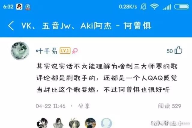 《何曾惧》的三位歌手中,有一位是VK,他的粉丝在这首歌的下面刷了许多支持VK的评论。当然了,一般情况下为表示对自己爱豆的喜爱刷刷评论以表支持本不是什么不妥的事,这种事也挺常见的。