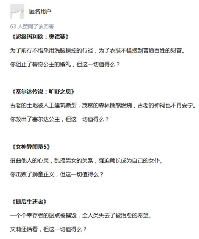 在贴吧的帖子里,在知乎的问题下,在微博的评论中,玩家们交换着彼此的愤怒和对制作组的反感。对于很多玩家而言,这游戏的设计不可谓不用心,玩法不可谓不精细,原本应该是一款能让他们感到快乐和满足的娱乐品——但这一切,都被最后那一句“这一切值得吗”毁掉了。