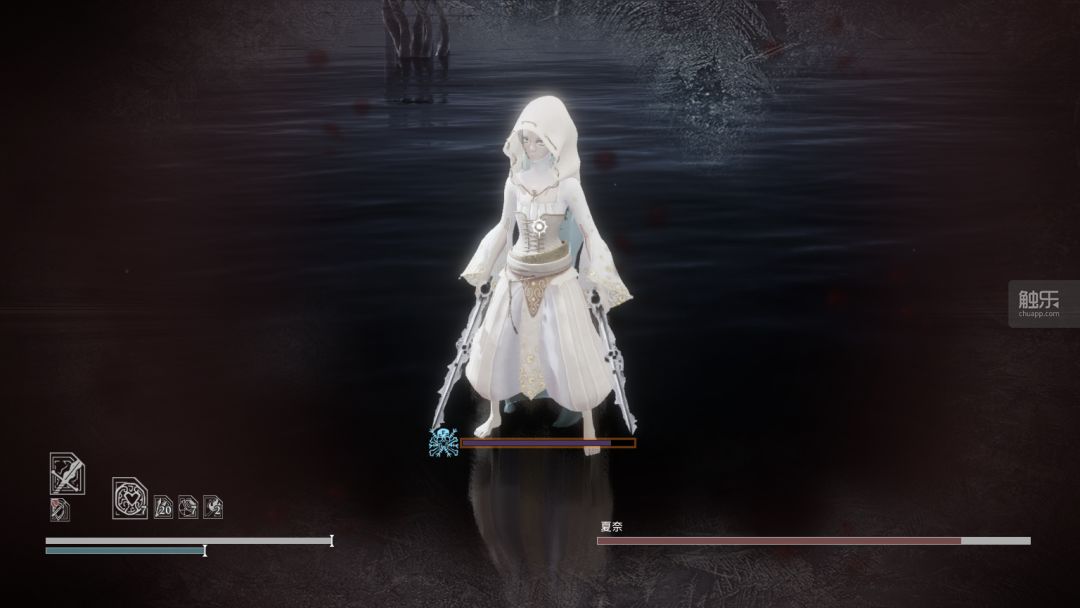 说完了差异性,我们来说说质量。必须承认,《救赎之路》的一些Boss设计得非常出色,说是国内一流水准也不为过——譬如代表“色欲”的Boss。在第一阶段它是一个身穿白纱的女性敌人,动作快、伤害不高,但是附带冰冻效果。