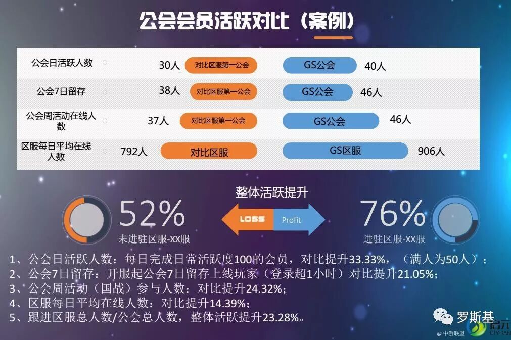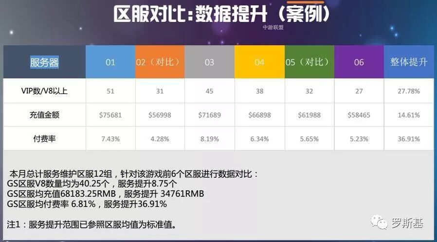 当然要做好GS维护也不是一件简单的事,需要非常专业的团队,去掌控和平衡着整个游戏内的生态。绿色公会GS维护或是GS外包团队的合作模式也是以基础运维服务费+用户留存、收入提升的比例来进行收费。目前,GS维护对产品的收入提升非常明显,基本可以达到ARPU10%-30%。根据罗斯基对GS维护市场的情况调查,一个服务的GS维护投入成本基本在大几千元,但相对却可以提升10%以上的收入。在买量成本越来越高,需要精细化运营的情况下,越来越多的公司选择了外包合作,GS维护也成为了行业的标配。