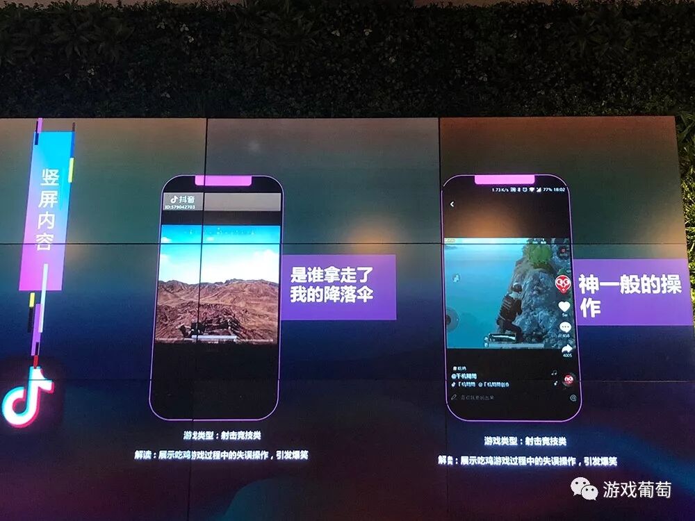 目前抖音生活类的内容占到了60%,主体是人和生活场景。此外某个用户看到比较好的创意,他也乐于去分享。举两个例子,左边的视频主题是“谁拿走了我的降落伞”,右边的视频主题是“神一般的操作”,目的都是展示吃鸡过程中的失误操作,引发爆笑。