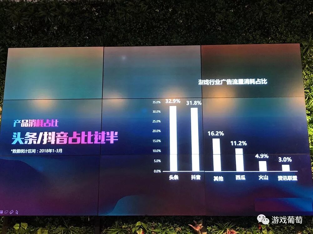 于3月6日才开启竞价功能的抖音在1-3月的游戏行业广告流量消耗数据上已经几乎和今日头条持平(抖音占31.8%,今日头条占32.9%)。