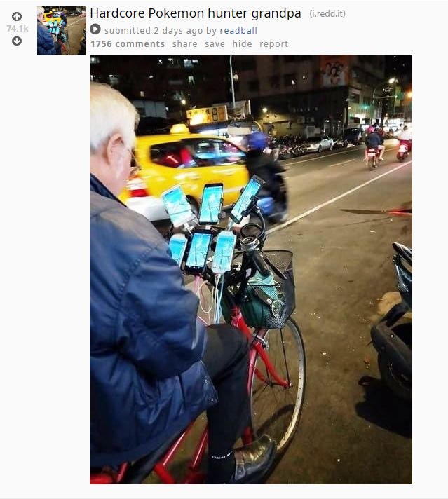 两天前,他是这座城市中无数高龄宝可梦玩家中的一个。他的一身装备被发到了美国最大的社交网络之一Reddit论坛。