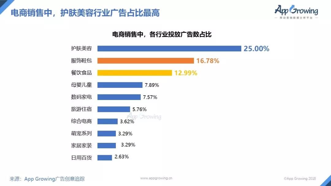 2)电商销售中,护肤美容行业广告占比最高