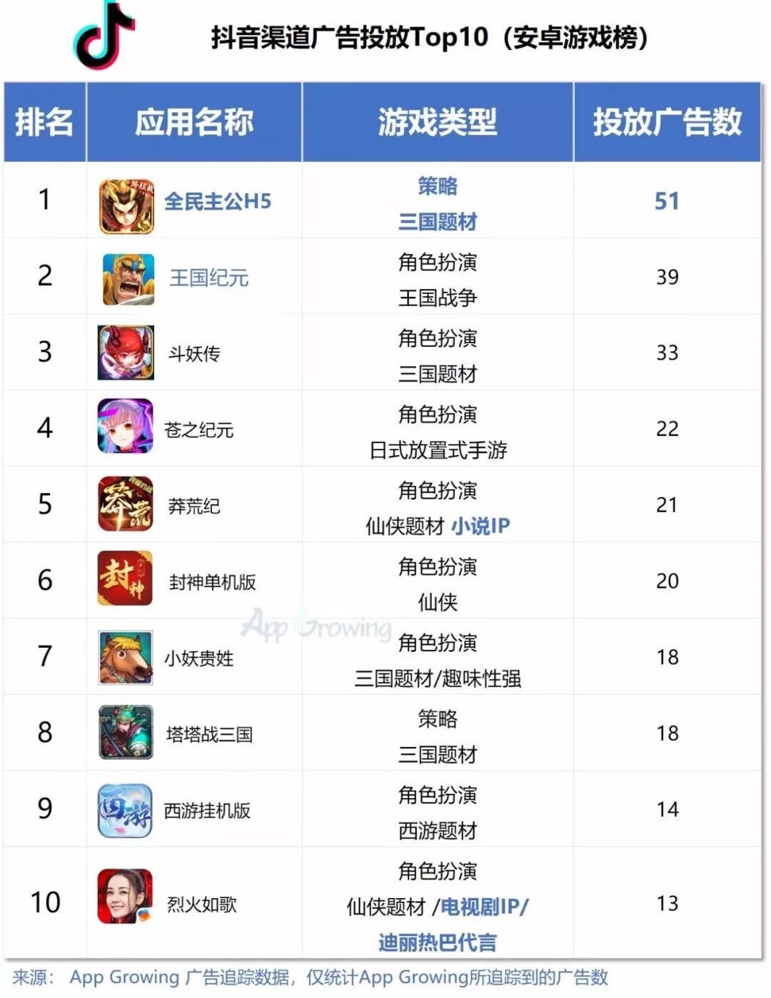 1)盘点广告投放游戏风云榜,三国策略手游《全民主公H5》强势刷屏