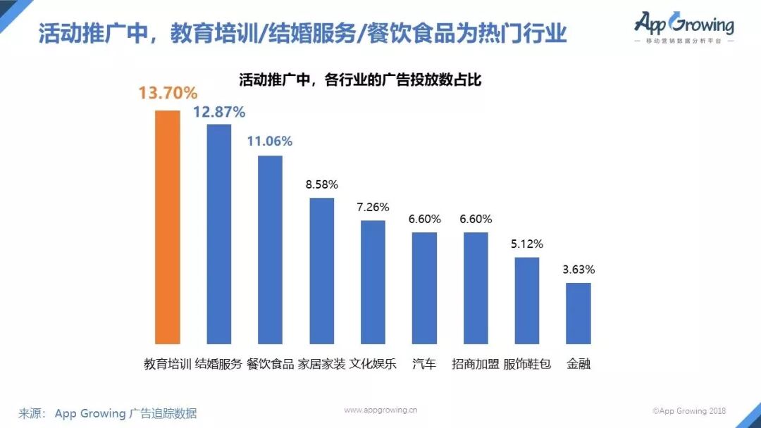 1)活动推广中,教育培训/结婚服务/餐饮食品为热门行业
