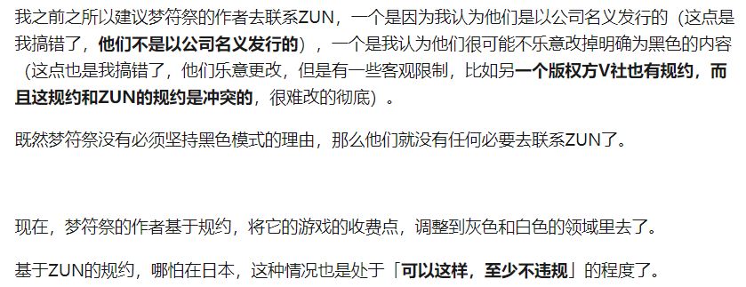在诸多二次创作作品中,游戏是最消耗成本,也是趣味性最好的一种内容,所以坚持东方不做商业化的ZUN,最终还是允许优秀的东方同人游戏进行商业化,但仅限买断制等非内购形式。
