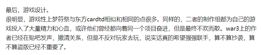 另外东方梦符祭作者曾表示自己向东方CardTD作者寻求过合作,并在地图介绍中加入了玩法来源声明。