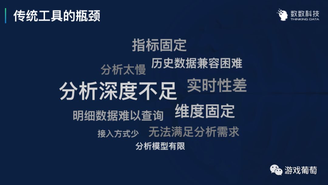 要做好精细化运营,数据分析是关键。但是传统的游戏数据分析技术有着不少缺点,如数据反馈慢、内容指标有限等,使得数据的价值并没充分发挥出来。