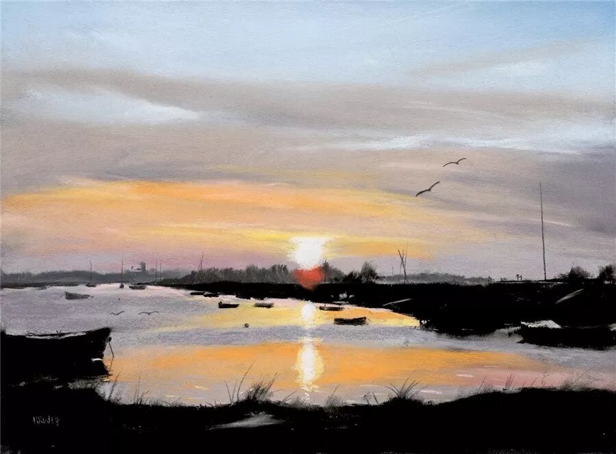 妈妈和爸爸会说他们不是艺术家。但是,他们喜欢艺术品并收集诺福克艺术家的作品。所以,当Kieron开始寻求帮助时,他的问题得到了很多本地艺术家的回应,他们很乐意花时间陪伴他,并且通过很多不同的方面来谈论绘画。 Kieron的妈妈说,从第一天开始,他就表现出了对色彩敏锐的直觉能力。Kieron喜欢尝试不同的媒介,水彩,丙烯,油画颜料和粉彩。