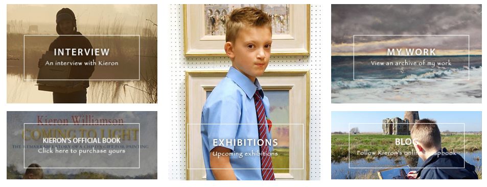 在2008年的第一次家庭度假期间,他开始想要画出自己的照片。在那之前,他并不喜欢画画,但喜欢为恐龙和猛禽着色,也喜欢父母画他。他向父母要了一个绘画板,他们很爽快的给他买了一个,那天晚上Kieron去了赫尔福德河沿岸的当地海湾,画了他所看到的一切。起初他的笔触会稍显稚嫩,但是经过父亲友人的指导,当时年仅四五岁的Kieron绘画天赋倾泻而出。
