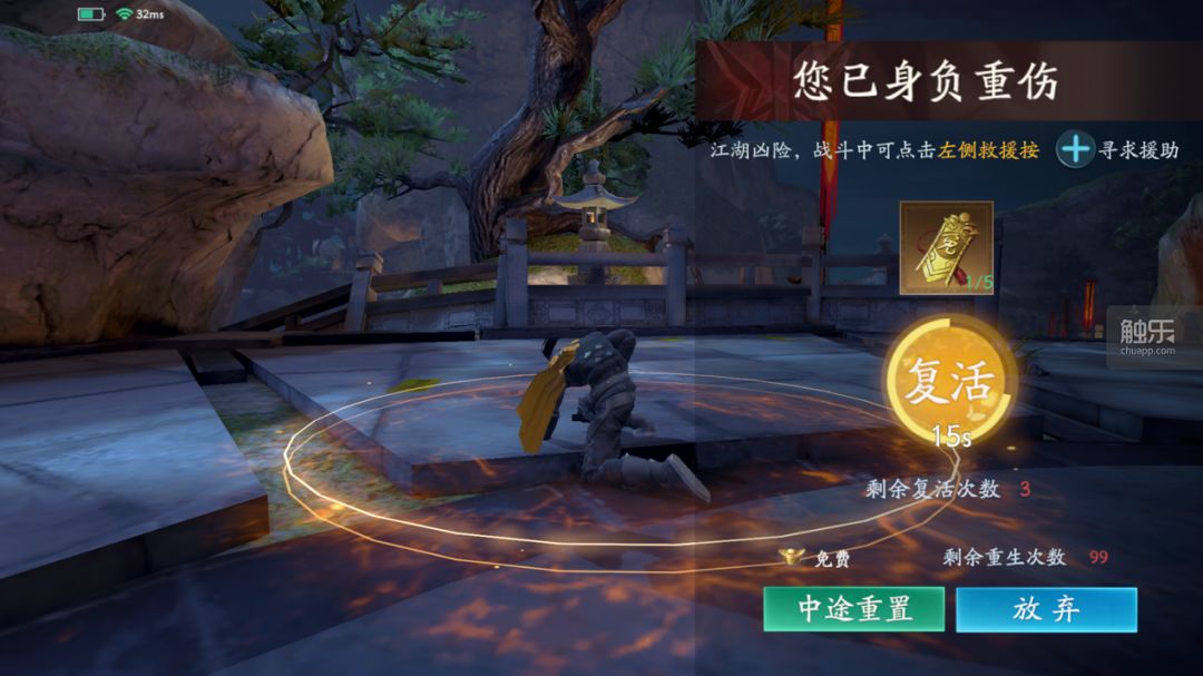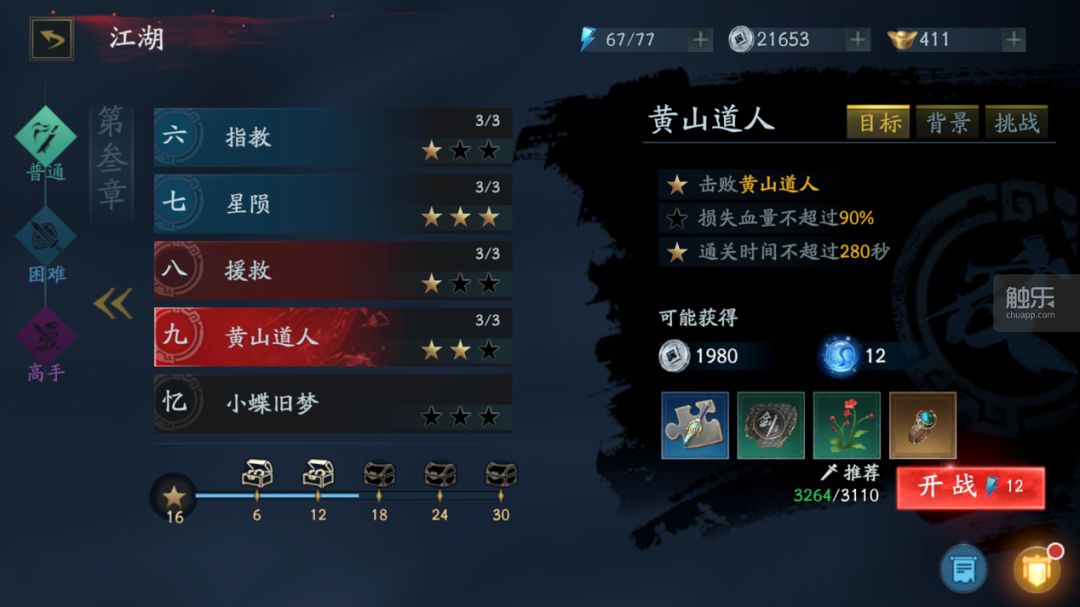 比如在第一小关中,即使游戏对玩家控制的角色叶枫进行了数值调整,好让我们不至于上来就死,但关底安排的Boss战还是会让新手玩家拿不到三星过关。在第一章的最后一关中,玩家们要面对主角的父亲进行一对一PK,如果没有在此前去修习过剑系招式,这场PK中非但难以拿到三星,甚至连过关都显得困难。我在这里吃到了游戏中的第一场败绩,开始了本作的“死亡之旅”。