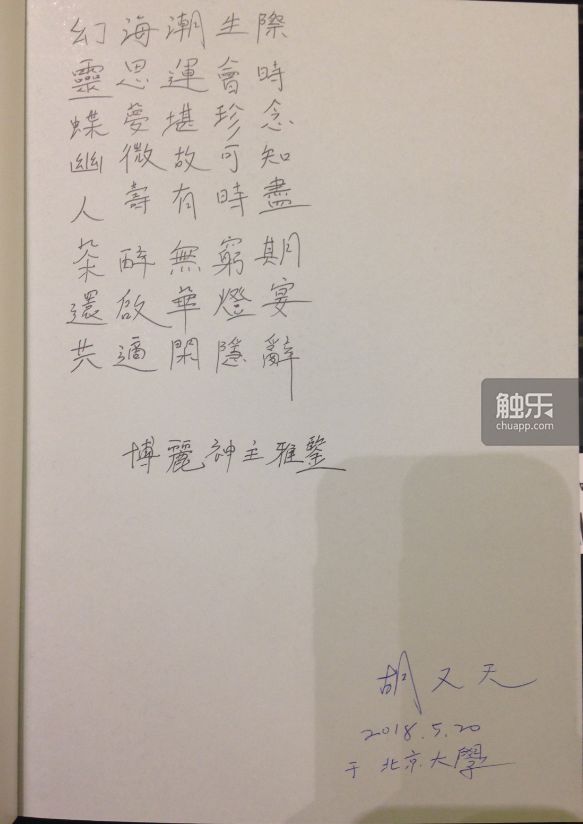 身为北大校友、“东方”同人,穿这一身去听讲座,再带戏偶来聚餐,也是很合理的