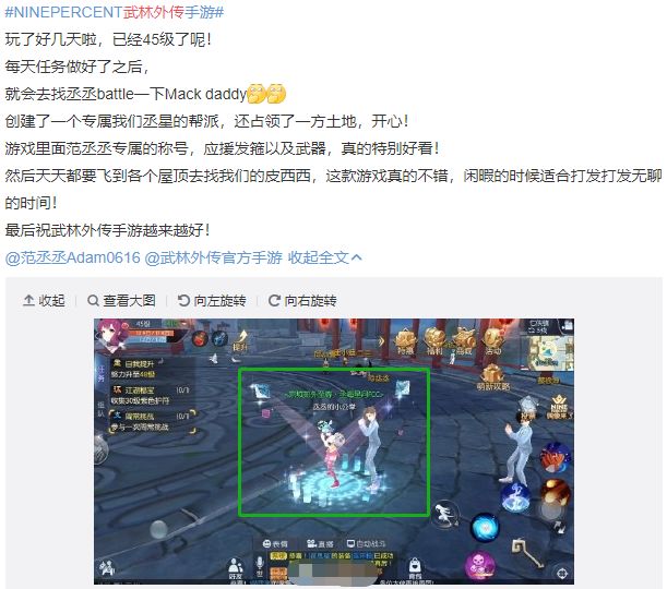 整体而言,在代言人玩法上《武林外传》的内容设计做得比较不错,在微博上很容易就能搜到一些爱豆玩家对游戏的评价,绝大部分是高分好评。她们在游戏里听着爱豆的声音、看着爱豆的虚拟形象、与爱豆在直播中一起愉快地游戏着。