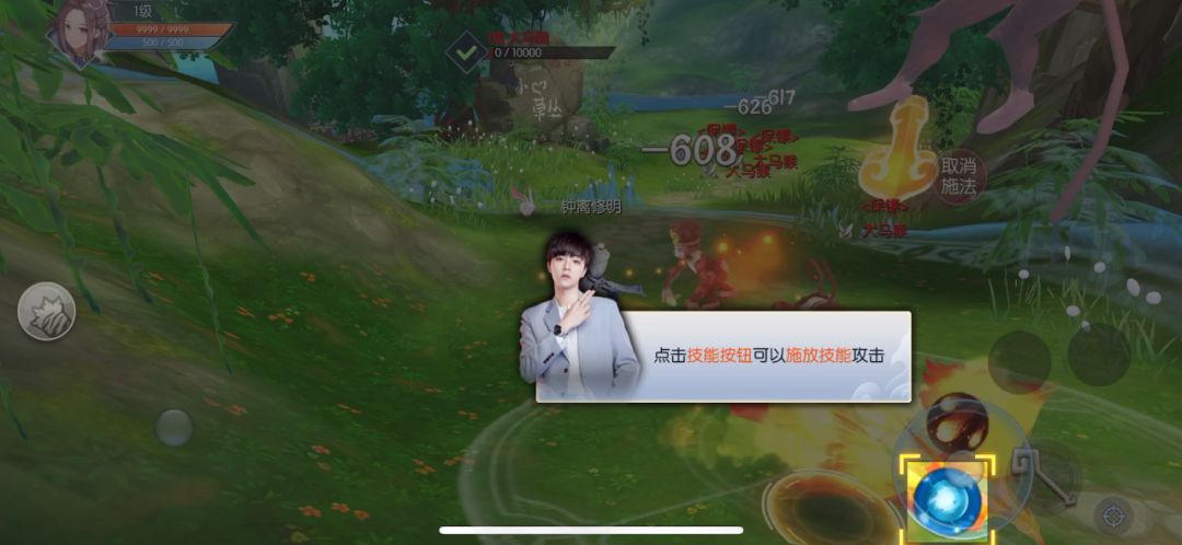 “干得漂亮,继续点击技能按钮,释放技能攻击,让我们乘胜追击吧。”
