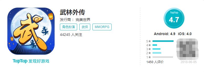 然而高人气的背后,似乎游戏口碑并没有达到。在TapTap上,《武林外传》在1450个玩家评价中仅获得4.7分,评价结构显示5星和1星的比例占多数,而据笔者观察,绝大部分1星评价都是以“情怀”的理由给出低分。
