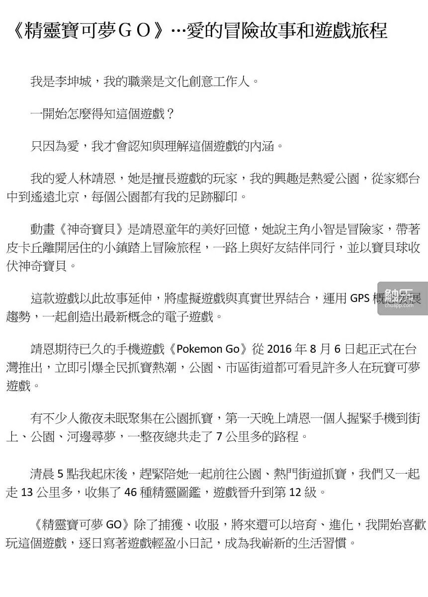 我个人的中老年亲友里并没有《精灵宝可梦Go》的深度玩家,但大家都是知道这款游戏的,因为这两年不时就能见到平时人很少的公园、街巷里突然涌来一大票人“抓怪”。于是当我在社群里发问求助以后,便有好几位同学和长辈向我转发图文、介绍亲友,或提供他们对此现象的解读以及论文链接。随后,我又在Facebook社团“精灵宝可梦社团 Pokémon Go”页面上,发现了我所熟悉的词人李坤城先生,他不但从2016年8月游戏刚出时玩到现在,而且玩得相当深入,不仅组团、聚会,还写文章记录心得体验。