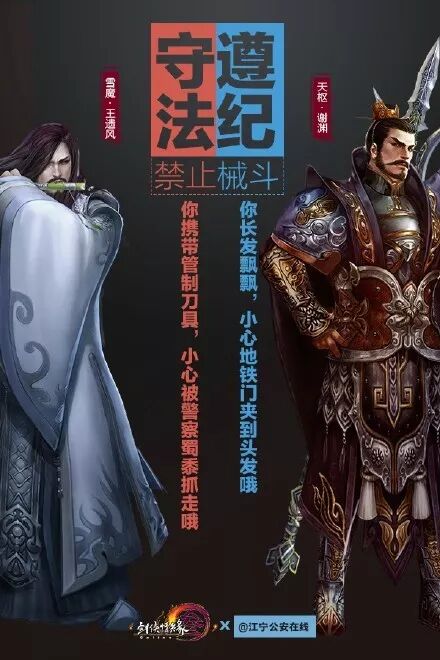 国内也有《剑网3》和江宁公安在线合作的公益宣传海报~