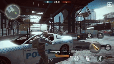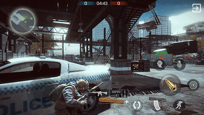 《Bullet Battle》的临场感给了笔者很大的震撼。游戏中加入了掩体系统,这在手游中出现是一次比较新颖的尝试。玩家在靠近建筑或者障碍物时,可以使用翻滚按钮实现“蹲靠掩体”的姿态。
