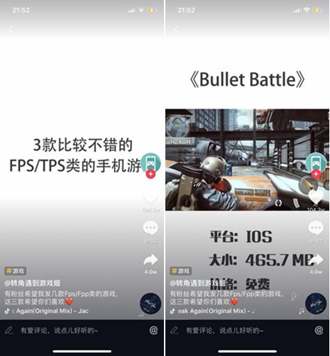 一、超百万点赞、4万分享,《Bullet Battle》因为抖音KOL推荐火了!