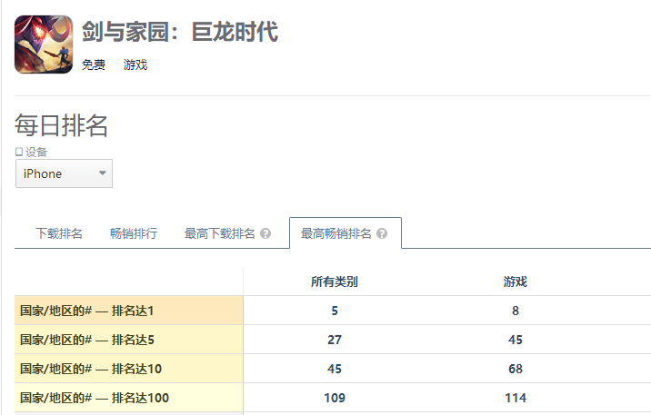 《剑与家园》iOS下载量估算趋势