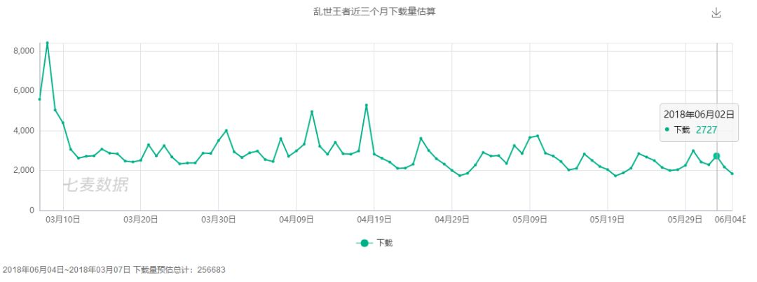 《乱世王者》近期iOS每日下载量仅在2000左右(预估)