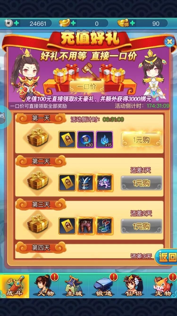 2、典型王婆卖瓜:绝对物超所值。不需要进行语言宣传,每个初级礼包都会赠送一些超值道具,道具数量被控制,玩家升级总是差一点。只要充值1块钱就能享受爽到家的感受。