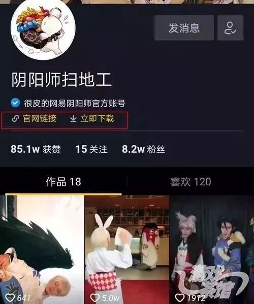 其实这应该是一个下载转化率较高的入口。只要游戏官方账号运营得好,所制作的内容就能被更多潜在用户、非游戏玩家看到。当这些用户关注官方账户时,就能看到下载链接,很可能就会点击下载从而转化为游戏用户。