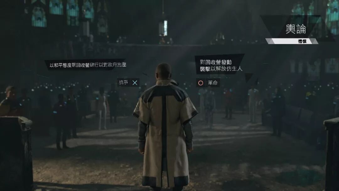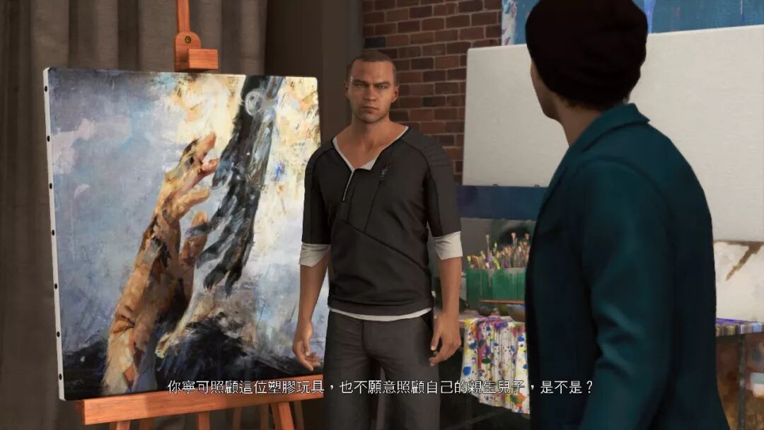 一直处于对立面的康纳几乎全程扮演着一个绝对服从的角色,他常常出现在其他角色的故事之后,从压迫者的角度看待并补充着这个故事。他的存在也让马库斯的所作所为有了更多的戏剧冲突,让玩家的选择变得更加纠结于复杂。