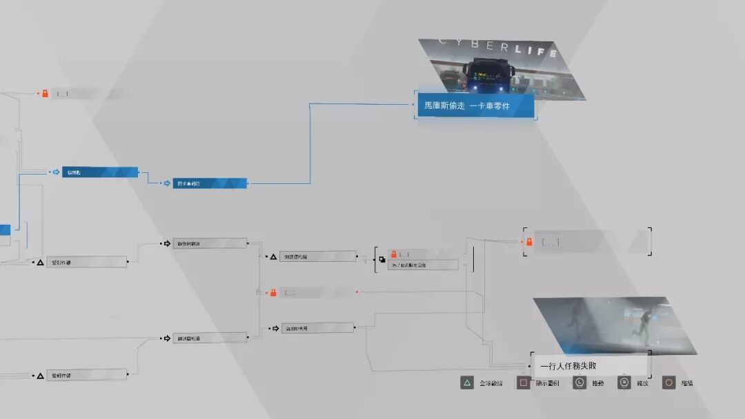 流程图在每个章节的结尾出现,密密麻麻的树状结构通往每个被解开或尚未解锁的剧情线。即使它被诟病影响了游戏的一体性和代入感,但它或许才是Quantic Dream工作室交出的最核心的体验与尝试。