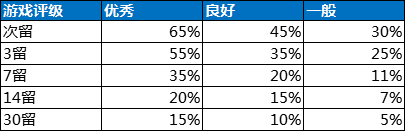 经验来自于神秘力量(不会告诉你们这群凡人)。下面是《游戏数据分析实战》提供的参考值并且我给增加了14留和30留,大家凑合看看。具体来说如果你有神秘力量,那么找找具体品类的。不同品类数据不同。