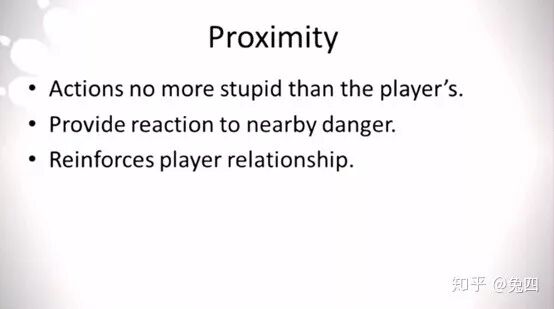 同伴AI的作用不言而喻,同伴可以帮你战斗、可以跟你聊天、平时会在旁边游荡、玩家陷入谜题的时候又会提供帮助,同伴AI涉及的范围相当之广,而且根据玩家当前的行为会有不同的AI。而且在功能性之外,同伴AI也是用来刻画人物性格的重要工具,合情合理的AI才能让玩家代入到游戏中去。