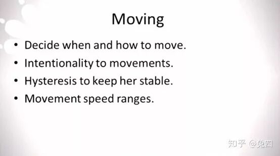所以接下来,我会讲到我们用怎样的一个系统来创造艾丽的AI。当然我只会挑一些重点和基础的设定来说,希望大家可以理解我们做这个AI系统的思路,然后去思考进一步的设计。