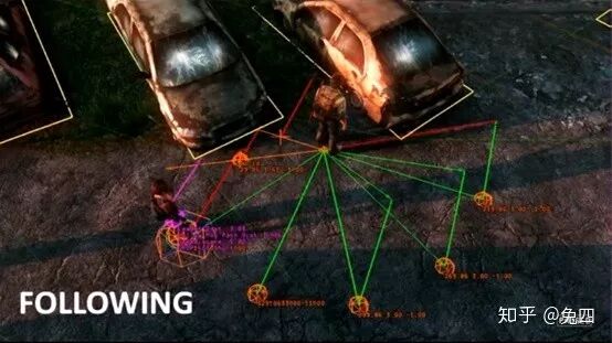 开始同伴AI的工作时,一般我们都会想到战斗AI,但我们想优先把位置关系AI做了.比如说艾丽会倾向于待在乔尔的旁边、而非靠近那些可怕的感染者。只要完成了这个位置关系的AI,艾丽的同伴AI实际上已经会有明显体验了。