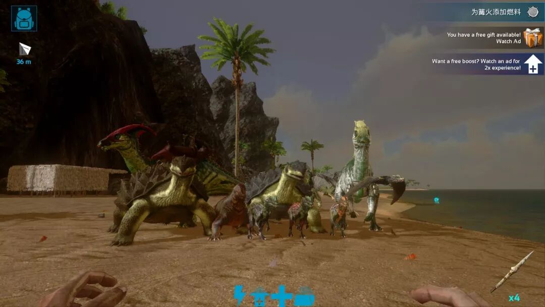 方舟手游在玩法上基本还原端游体验。在游戏初始阶段,玩家身处一个名为“ARK”的海岛,周围充满了恐龙等远古生物。玩家要做的,就是活下去。在多人模式中,不同玩家相遇,需要合作或者相互厮杀。