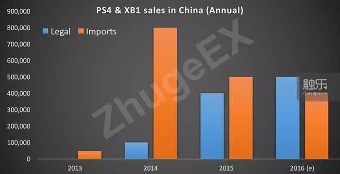 迄今为止,索尼并未公布国行PS4销量的数据。但根据一份来自newzoo的统计报告,国内行货主机的销量一共是100万台左右,而非国行(通过各种渠道购买的水货)主机的数量约为国行的2倍。也就是说,目前国内的主机装机总量大概只有300万台,这还是索尼和微软加在一起的数字,即使算上增长,这个数字也不会超过400到500万。这单独看来还没什么,不过只要一对比就能看出问题——今年年初,索尼互动娱乐社长小寺刚在接受采访时表示,PS4的全球销量已经超过了7900万台。Xbox One销量虽不及PS4,但也有3700多万。